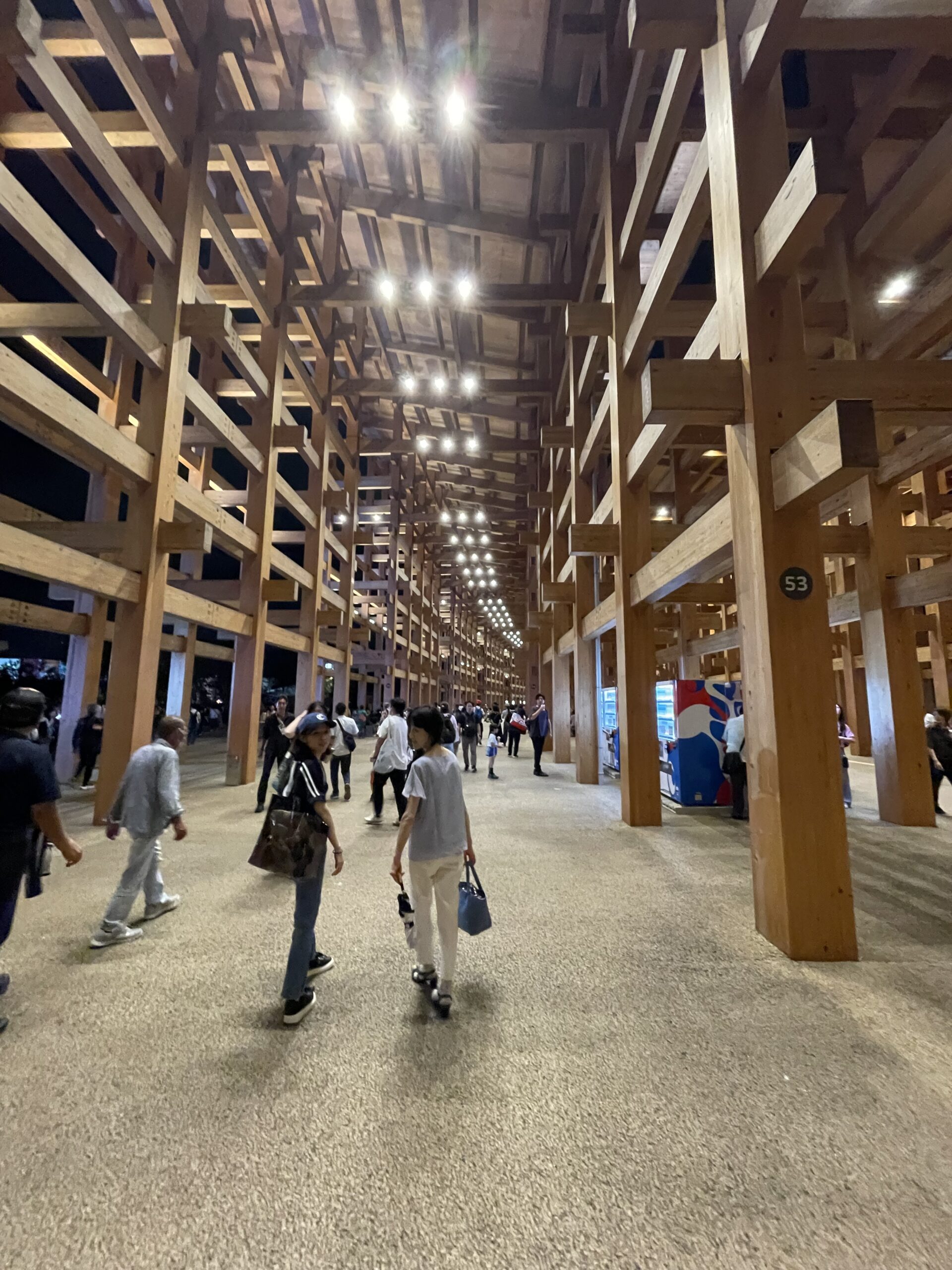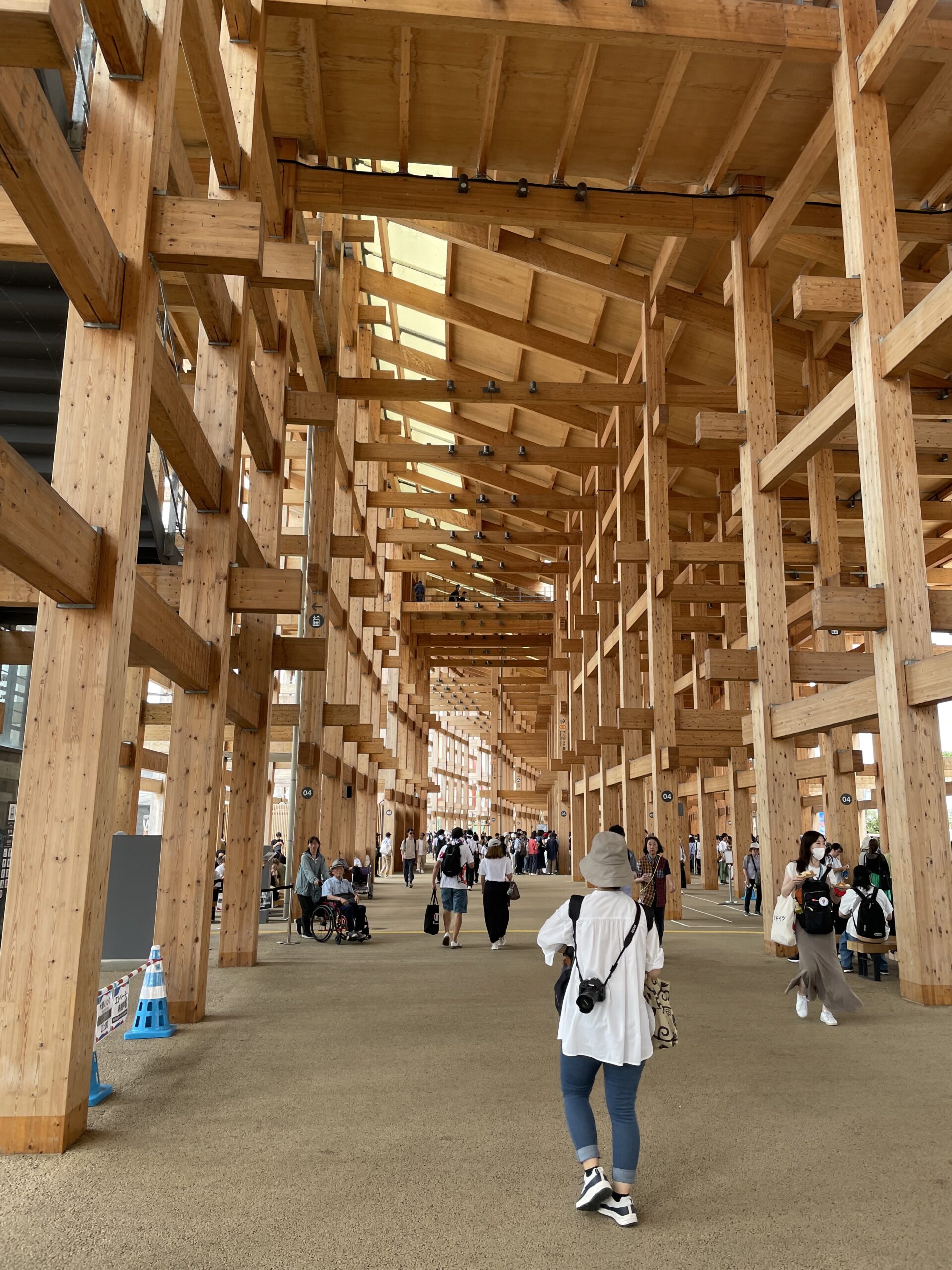 リング上をかなりの距離を歩きました。1周2kmということですがほぼ1周歩いたのではないでしょうか。この日の天候は曇りで海風が気持ちよく、今回の万博の目玉はやはりこの大屋根リングであることを再確認しました。藤本壮介氏の設計力に感服です。