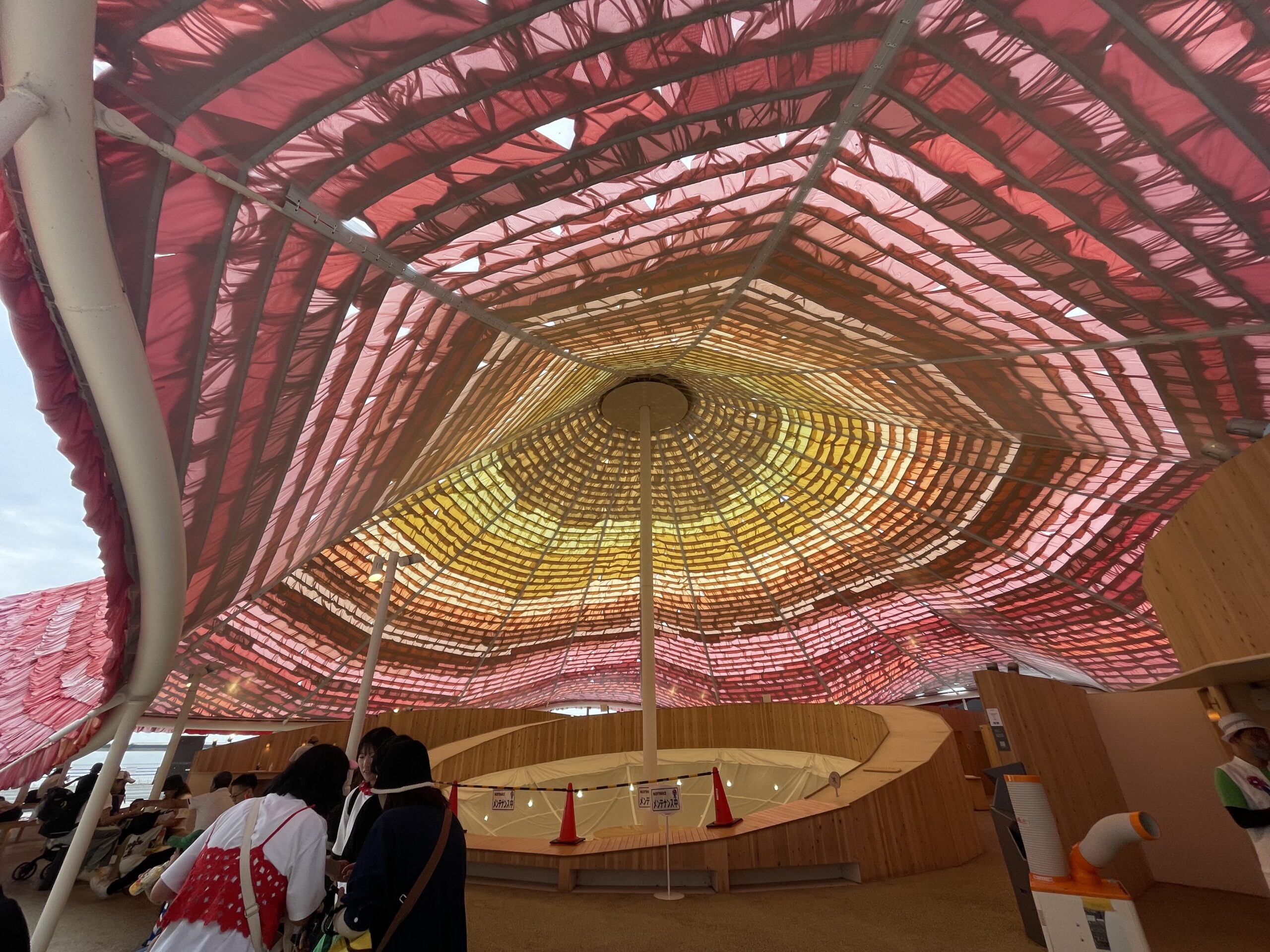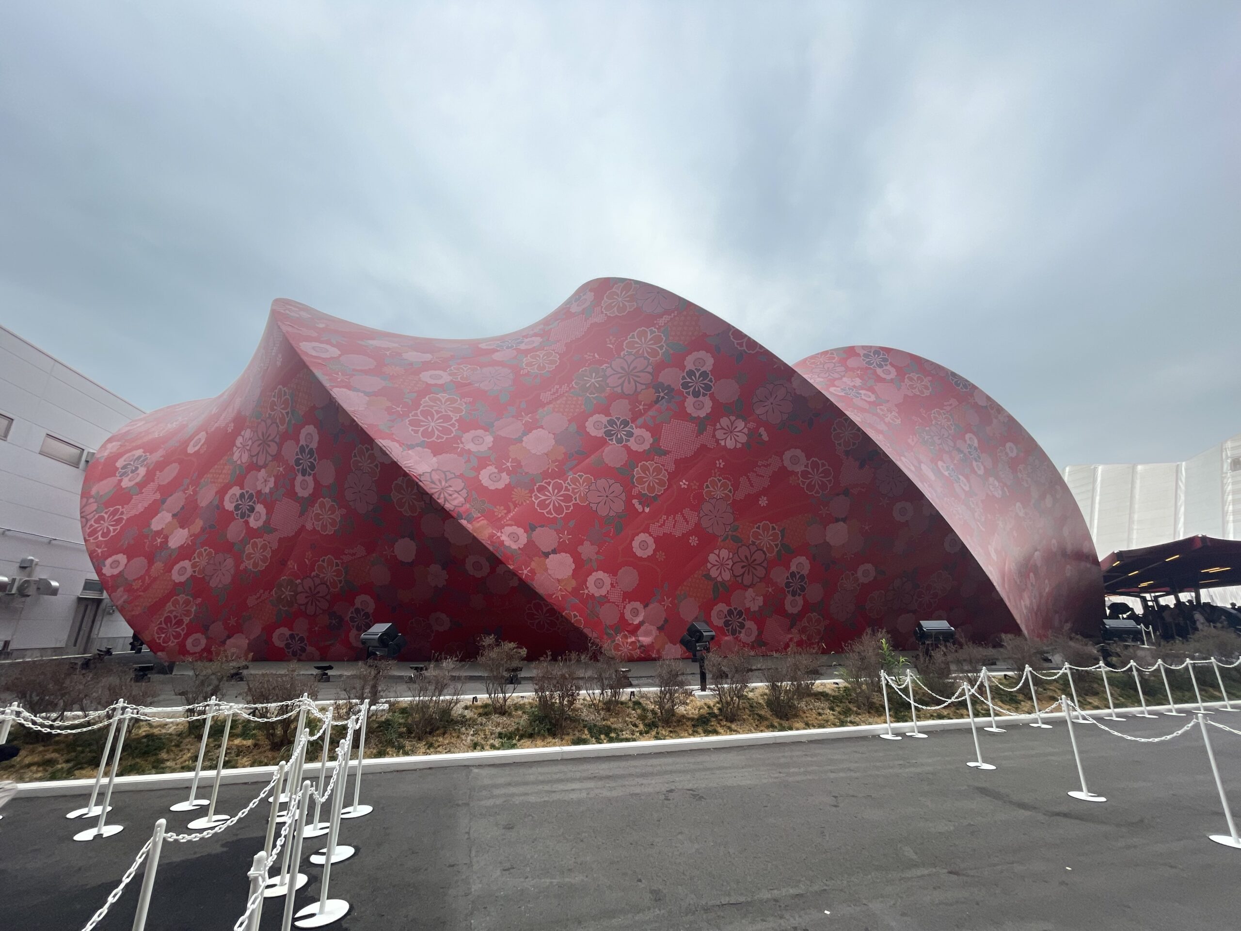 これは飯田グループのパビリオンで外部の膜は西陣織が組み込まれてるようです。