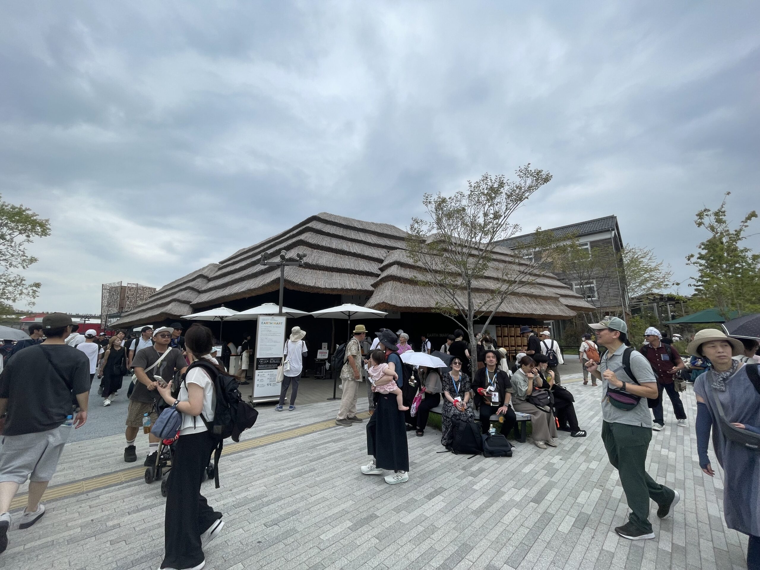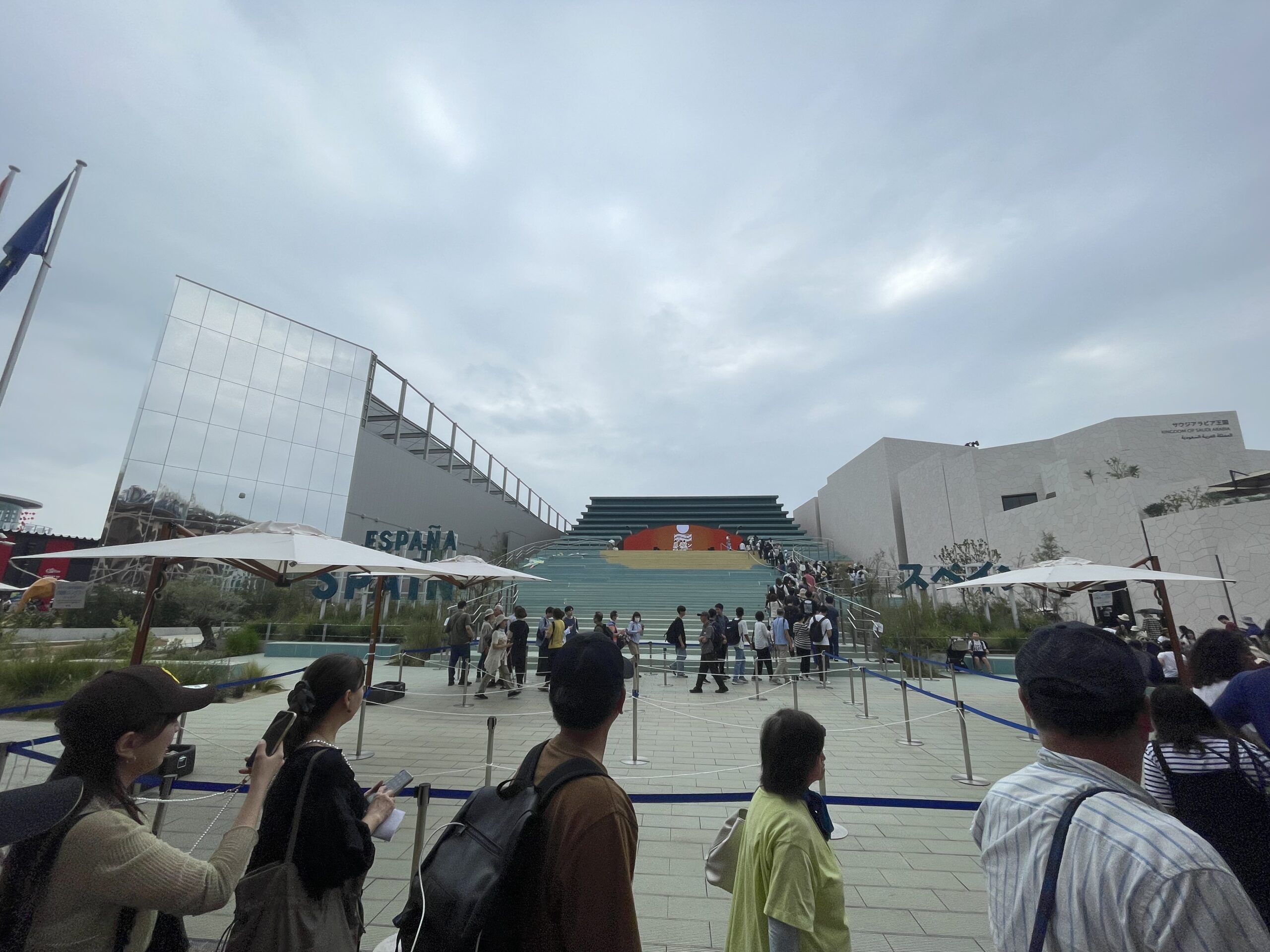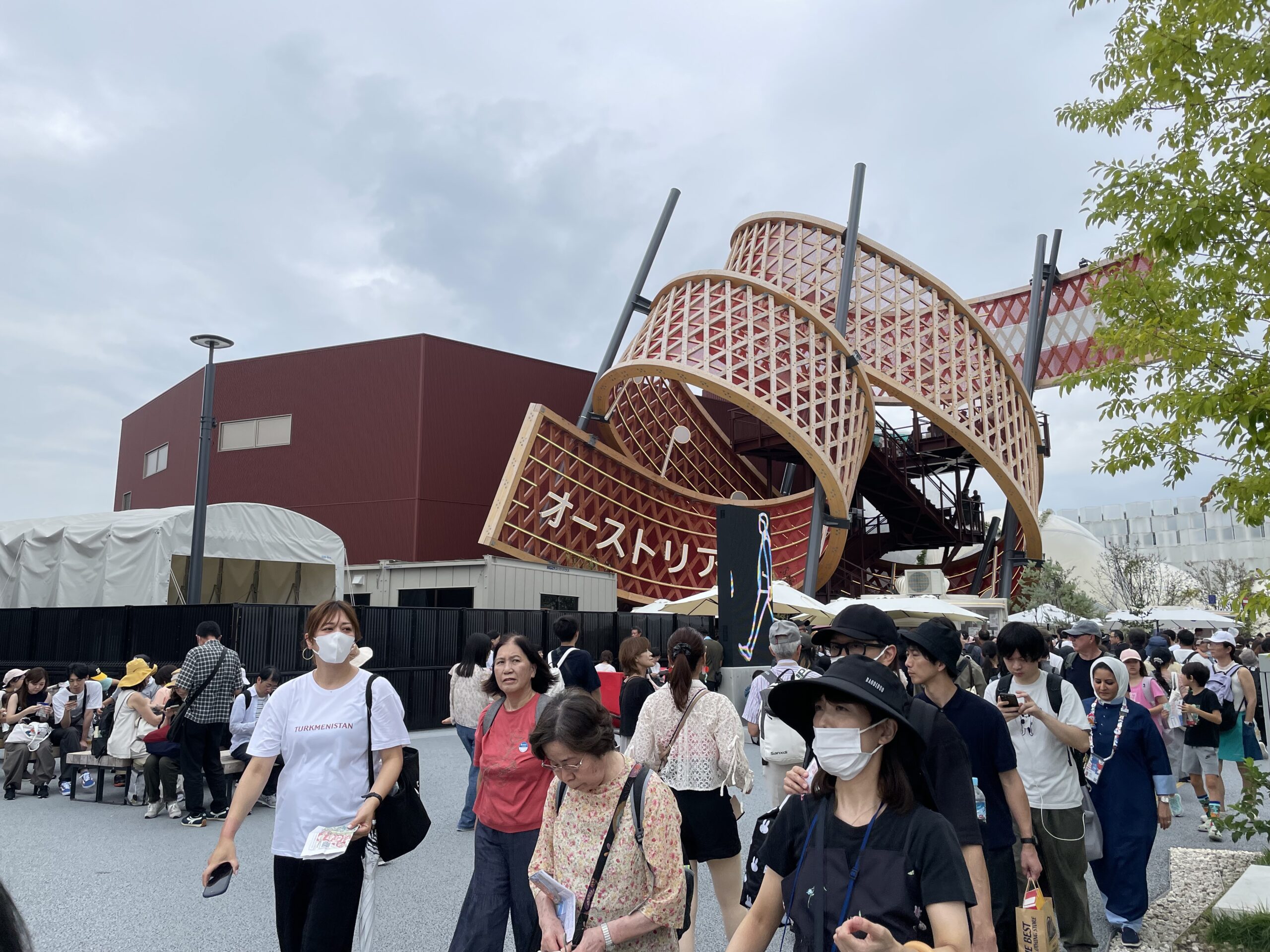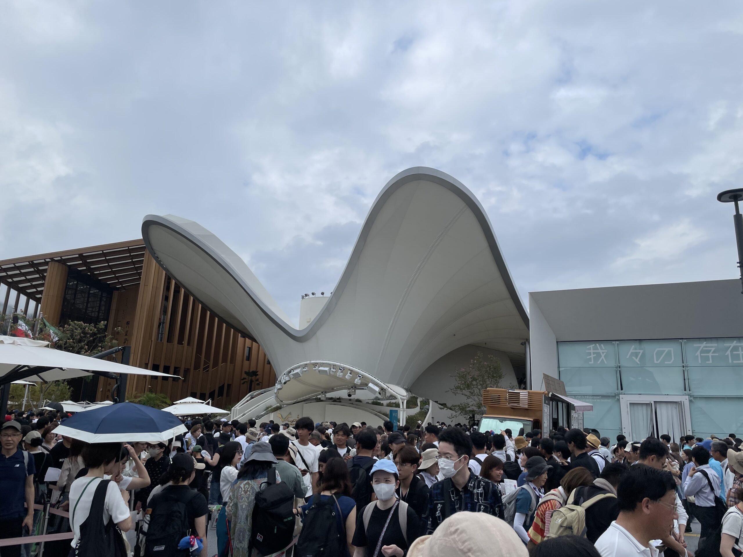 少し大屋根リング下を歩きます。イタリアパビリオン前は長蛇の列で屋根下が歩けないくらいでした。