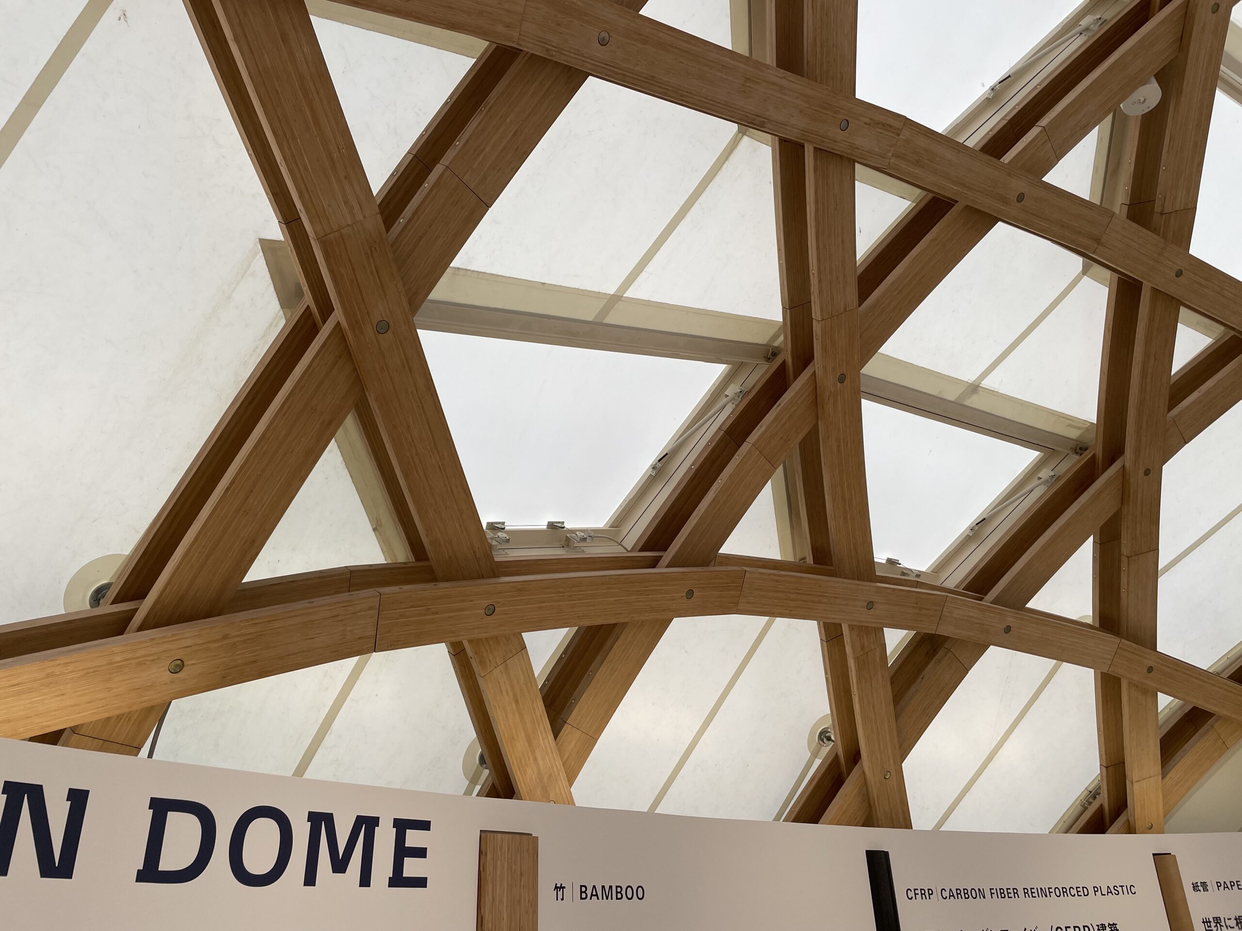 3つのドームで構成されていて最初のドーム屋根は竹の集成材でできています。