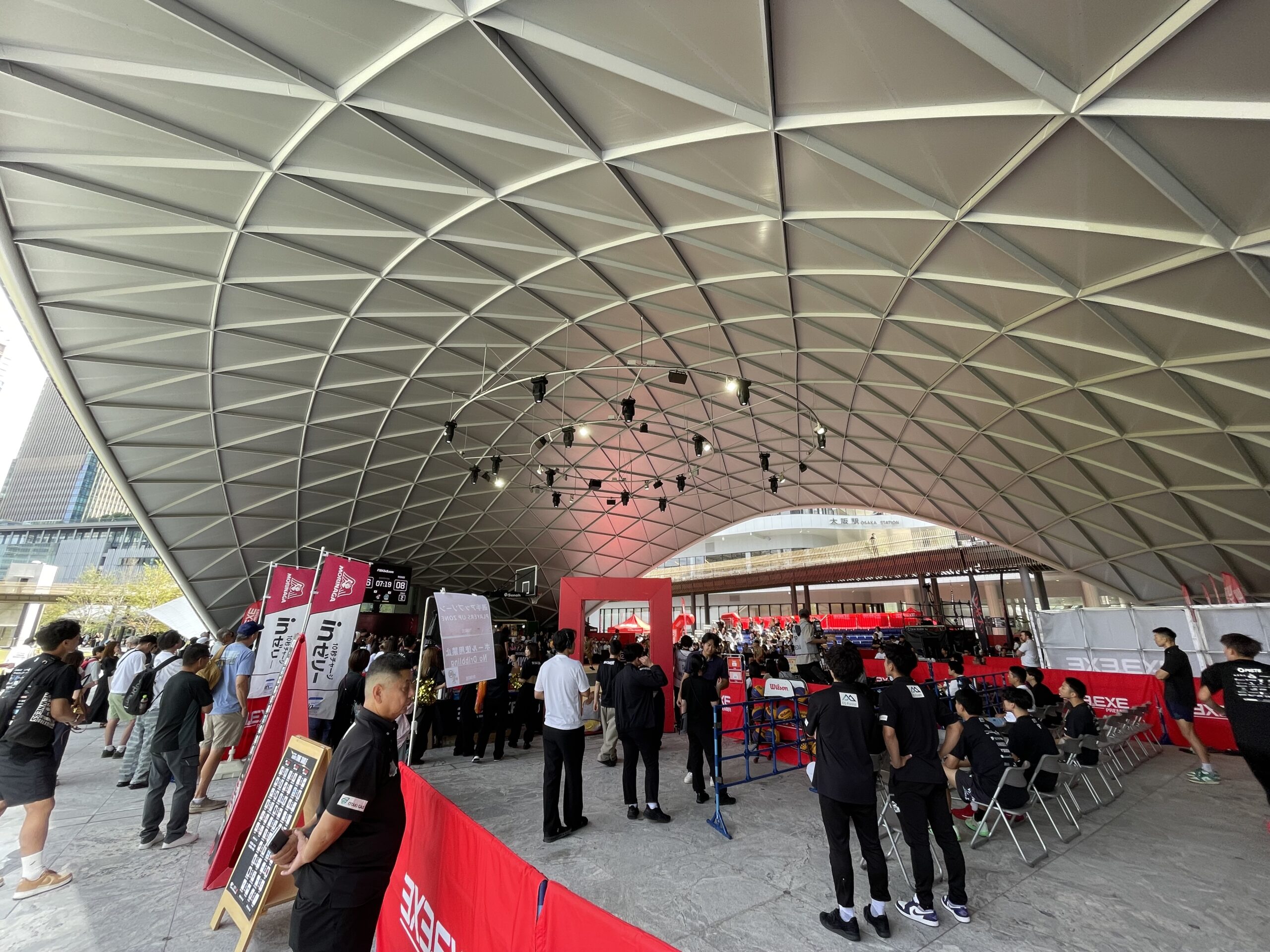 この日は屋外イベントスペースでプロバスケットのイベントを行っていました。