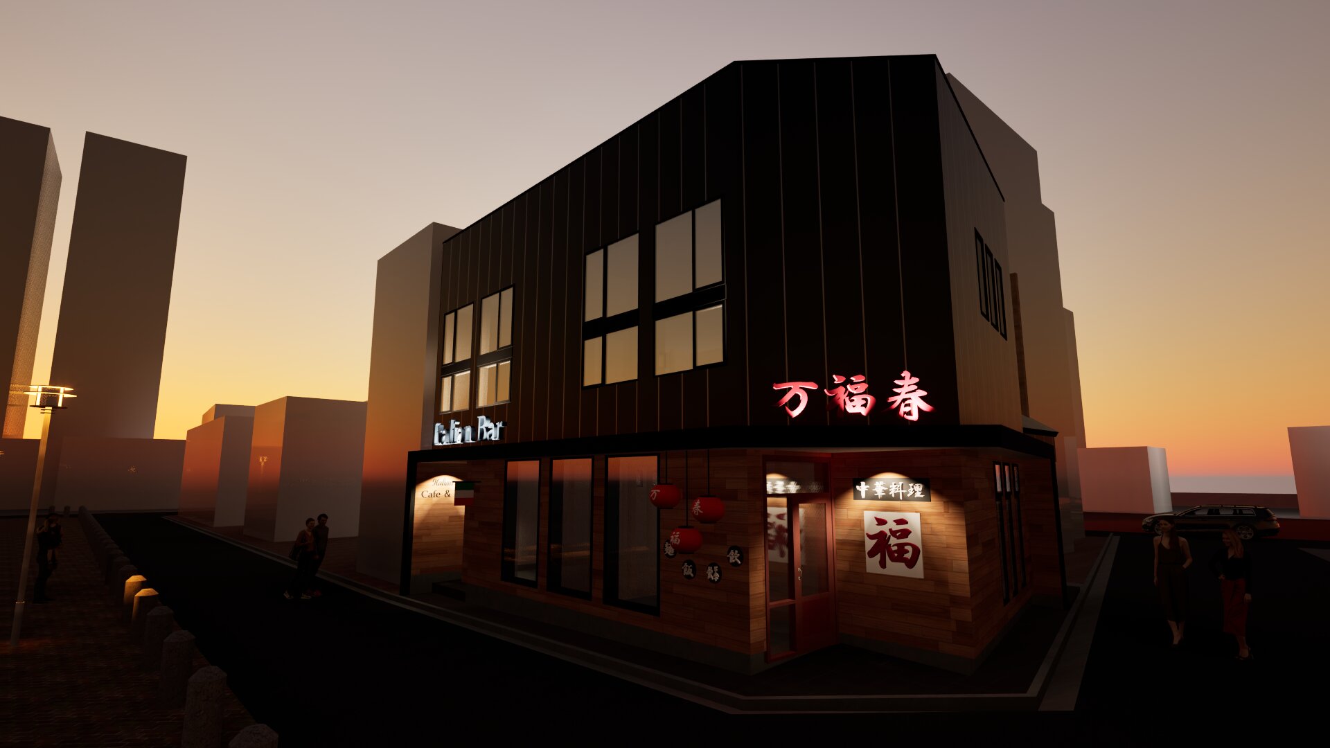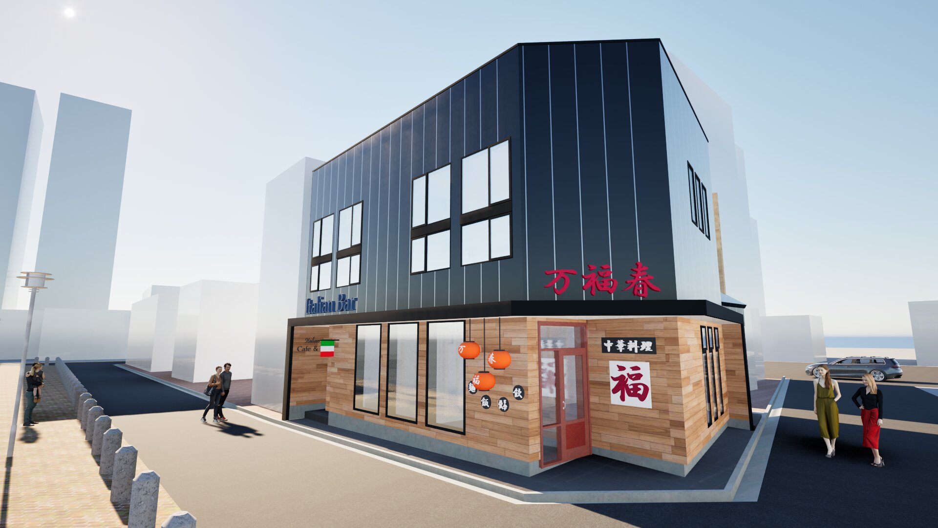 飲食店が入る木造2階建ての小さいビルですが、防火地域ということもあって耐火構造にしなければなりません。この規模での耐火構造で結構難しい施工にはなると思います。木造にしたのは施主の要望で工期が最優先事項だったためです。施工工期も3カ月です。